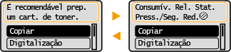 As mensagens são exibidas na tela em situações como quando o papel acaba ou quando a vida útil do cartucho de toner chega ao fim.