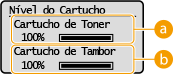 Use o procedimento abaixo para verificar a quantidade de toner restante nos cartuchos, etc. Isso é particularmente importante para saber se você precisa ter um novo cartucho de toner ou cartucho de tambor à mão antes de iniciar um trabalho de impressão grande.