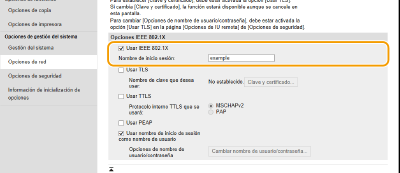 Marque la casilla de verificación [Usar IEEE 802.1X] e introduzca el nombre de inicio de sesión en el cuadro de texto [Nombre de inicio sesión].