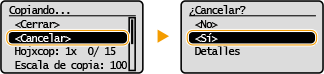 Seleccione <Cancelar> en la pantalla que aparecerá durante la copia