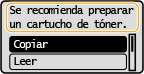 Este mensaje le informa de que muy pronto deberá sustituir un cartucho de tóner. Asegúrese de contar con un cartucho de tóner de sustitución. Sustituya el cartucho de tóner si visualiza este mensaje antes de comenzar a imprimir un trabajo grande.