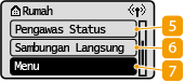 <Menu><Tetapan Rangkaian>, <Keutamaan> dan banyak tetapan mesin lain bermula daripada item ini. Senarai Menu Tetapan