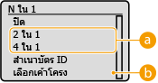 การใช้ <N on 1> จะลดอัตราส่วนของสำเนาโดยอัตโนมัติ (อัตราส่วนของสำเนาจะปรากฏบนหน้าจอ) ถ้ากระบวนการทำสำเนาไม่เริ่มต้นขึ้น คุณสามารถลดขนาดภาพได้อีกโดยลดค่าตัวเลขที่ปรากฏโดยอัตโนมัติ แต่ระบบอาจไม่มีการทำสำเนาขอบของต้นฉบับ ถ้าคุณเพิ่มขนาด