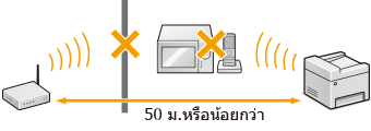 มีสิ่งกีดขวางใด ๆ เช่น ผนัง ระหว่างเครื่องกับเราเตอร์แบบไร้สายหรือไม่