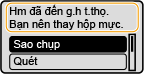 Máy sẽ hiển thị thông báo khi lượng mực còn lại trong hộp mực thấp. Lưu ý rằng chất lượng in có thể ảnh hưởng nếu bạn tiếp tục in mà không giải quyết vấn đề này. Bạn có thể kiểm tra lượng mực còn lại trong hộp mực trên màn hình hiển thị (