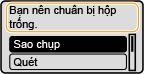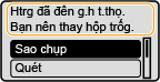 Thông báo được hiển thị tùy thuộc vào lượng mực còn lại trong hộp trống. Tùy theo thông báo được hiển thị, hãy chuẩn bị một hộp trống mới (