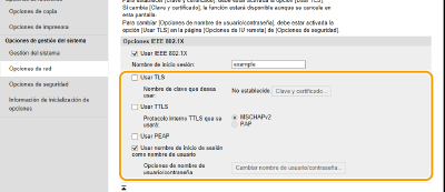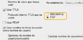 Seleccione la casilla de verificación [Usar TTLS] o [Usar PEAP].