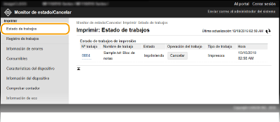 Puede eliminar un trabajo haciendo clic en [Cancelar].