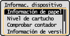 Muestra el estado del equipo, como puede ser la cantidad restante en los cartuchos de tóner, etc.