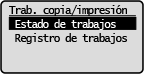 Muestra los estados de copia/impresión actuales y los registros de los documentos impresos.