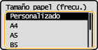 Si no aparece el tamaño de papel cargado, seleccione <Otros tamaños>.