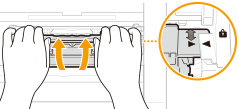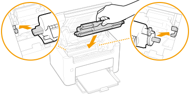 Do not shake or tilt the toner cartridge. Also, make sure to avoid applying shocks to the toner cartridge, such as by hitting it against something. Doing so may cause the toner left in the toner cartridge to leak. Remove the toner cartridge gently at the same angle as the slot.