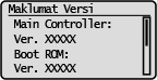 Anda boleh menyemak versi perisian tegar dari panel operasi mesin. Setelah selesai operasi kemas kini perisian tegar, pastikan maklumat itu dilakukan dengan betul. Menyemak versi Perisian Tegar