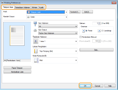 Tentukan tetapan cetakan sebagaimana diperlukan dan klik [OK].