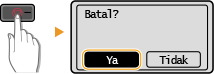 Jika anda ingin membatalkan menghantar dokumen dengan segera selepas memulakan imbasan, pilih <Batal> pada paparan dan tekan