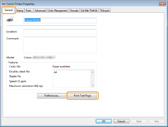 Nhấp vào [Print Test Page] trong thẻ [General].
