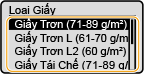 Nếu cỡ giấy đã nạp không hiển thị, chọn <Cỡ Khác>.