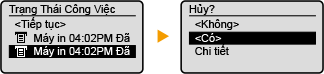 Hủy từ Remote UIBạn có thể hủy bỏ in từ trang [Job Status] trên Giao Diện Remote UI: Kiểm tra Trạng Thái Hiện Tại của Tài Liệu In