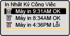 Khi <Hiển Thị Nhật Ký Công Việc> được cài đặt là <Tắt>, bạn không thể kiểm tra nhật ký in. <Hiển Thị Nhật Ký Công Việc>