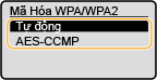 Cài đặt máy sang chế độ tự động chọn AES-CCMP hoặc TKIP để tương thích với cài đặt của bộ định tuyến không dây.