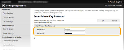 [Key and Certificate Settings] or [CA Certificate Settings].