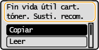 Este mensaje le informa de que el cartucho de tóner ha llegado al final de su vida útil. Se recomienda sustituir el cartucho de tóner por uno nuevo. Podrá continuar imprimiendo, pero no puede garantizarse la calidad de impresión.