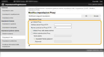 Selezionare la casella di controllo [Utilizzo Proxy] e specificare le impostazioni richieste.