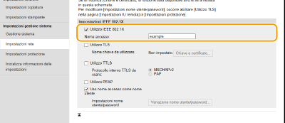 Selezionare la casella di controllo [Utilizzo IEEE 802.1X] e immettere il nome di accesso nella casella di testo [Nome accesso].