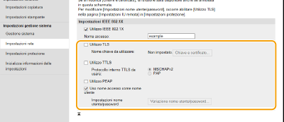 Selezionare la casella di controllo [Utilizzo TTLS] o [Utilizzo PEAP].