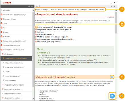 La Guida per l'utente è suddiviso in diverse schermate e il contenuto di ciascuna schermata varia.
