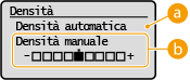 È possibile regolare la densità della copia se il testo o le immagini in un originale sono troppo chiari o scuri. È anche possibile impostare automaticamente una densità ottimale per un originale.