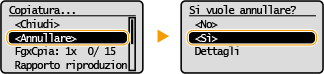 Selezionare <Annullare> sullo schermo visualizzato durante la copia
