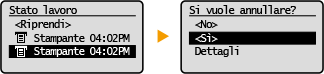 Annullamento dalla IU remotaÈ possibile annullare la stampa dalla pagina [Stato lavoro] sulla IU remota: Controllo dello stato corrente dei documenti di stampa