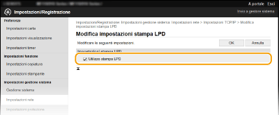 Fare clic su [Modifica] in [Impostazioni stampa LPD] o in [Impostazioni stampa RAW].