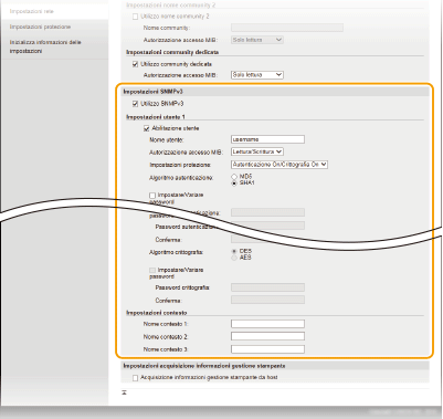 Specificare le impostazioni SNMPv3.