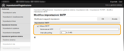 Selezionare la casella di controllo [Utilizzo SNTP] e specificare le impostazioni richieste.