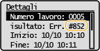 Se si verifica un errore, ad esempio quando la stampa non riesce, il codice di errore corrispondente viene visualizzato nella schermata del registro dei lavori come numero a tre cifre. Verificare quanto segue per individuare cause e soluzioni per ciascun codice di errore. Per maggiori dettagli sulla schermata del registro dei lavori, vedere