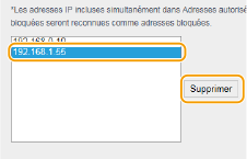 Sélectionnez une adresse IP, puis cliquez sur [Supprimer].