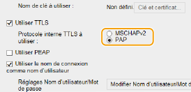 Vous pouvez sélectionner [MSCHAPv2] ou [PAP].