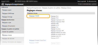 Vous ne pouvez modifier certains réglages que si vous êtes connecté en Mode administrateur système.