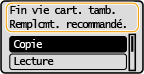 <Cartouche de tambour en fin de vie> pour afficher la procédure de remplacement de la cartouche de tambour.