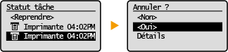 Sélectionnez le document dont vous voulez annuler l'impression, puis sélectionnez <Oui>.