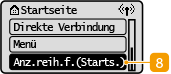 <Anz.reih.f.(Starts.)>Hiermit können Sie die Reihenfolge ändern, in der die Optionen des Bildschirms Startseite angezeigt werden. Anpassen des Bildschirms Startseite