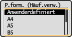 Wenn das Format des eingelegten Papiers nicht angezeigt wird, wählen Sie <Andere Formate>.