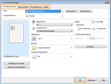 Legen Sie gegebenenfalls die Druckeinstellungen fest, und klicken Sie auf [OK].