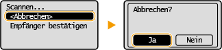 Wenn Sie das Senden eines Dokuments sofort nach dem Starten des Scanvorgangs abbrechen möchten, wählen Sie auf dem Display <Abbrechen> oder drücken Sie