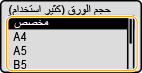 إذا لم يتم عرض حجم الورق الذي يتم تحميله، فحدد <أحجام أخرى>.