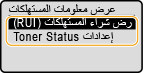 <عرض معلومات المستهلكات(RUI/Toner Status)>