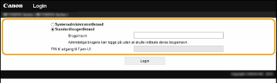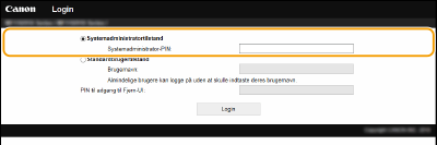 Indtast den korrekt pinkode i [Systemadministrator-PIN] for at logge på i systemadministratortilstand.