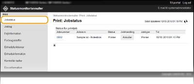 Hvis du er logget på i systemadministratortilstand, vises alle de udskrivningsdokumenter, der i øjeblikket udskrives og venter på at blive udskrevet.